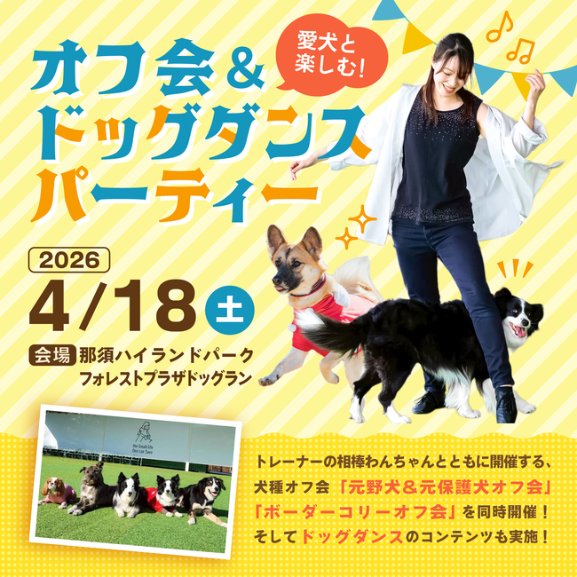 トレーナーの相棒わんちゃんとともに開催する、犬種オフ会「元野犬&元保護犬オフ会」「ボーダーコリーオフ会」を同時開催!